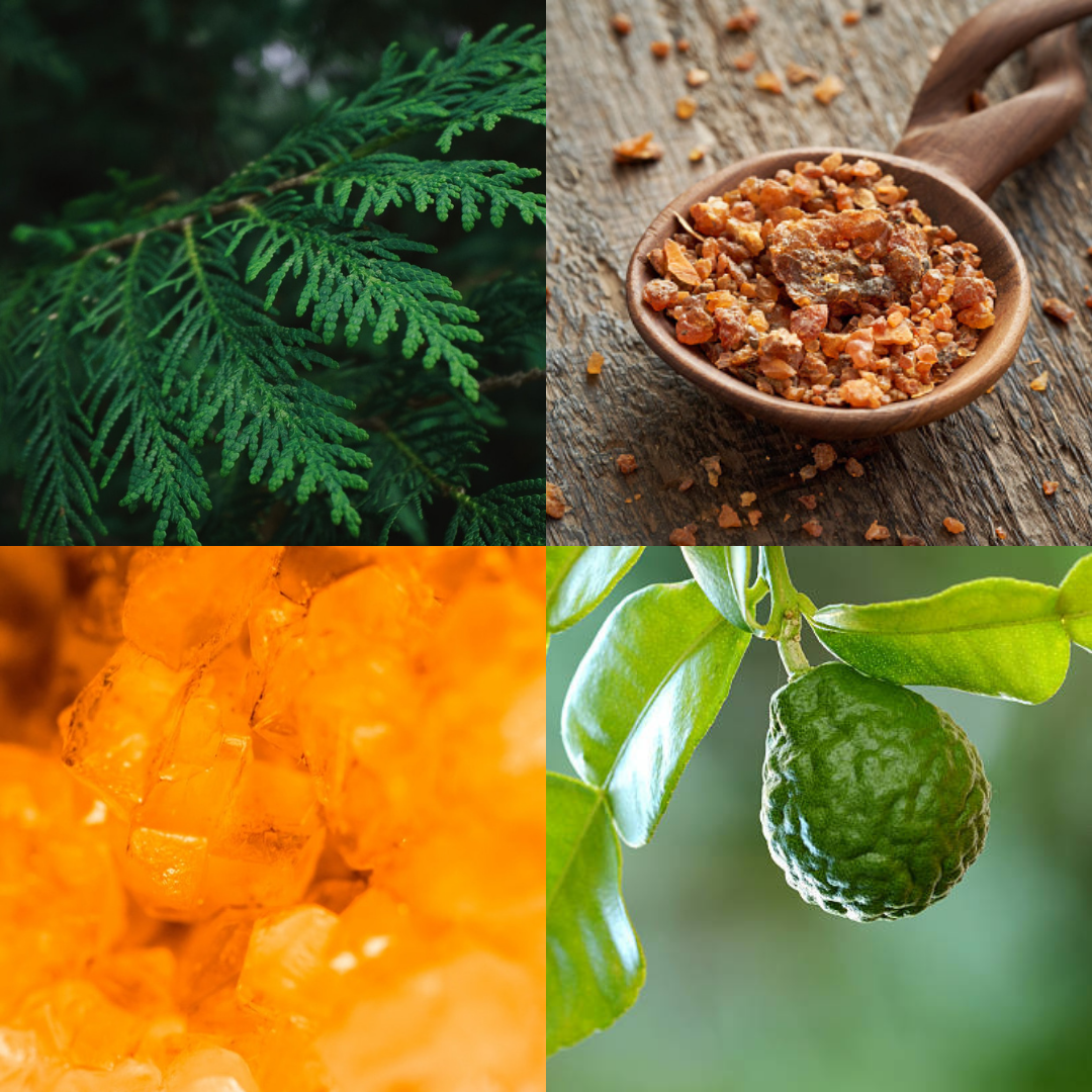 スパイシーなシダーとスモーキーでほのかに甘いミルラをメインに、ベルガモットやユーカリの爽やかさや、アンバーやバニラ等の温かみが絡み合う、神秘的な森林をイメージした香りです。